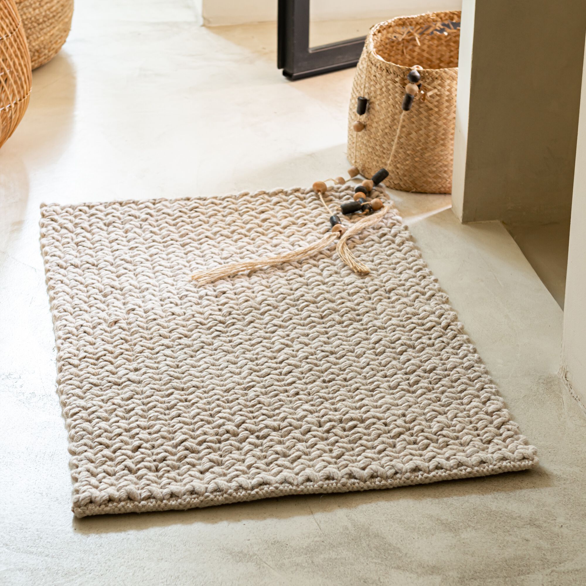 BURELLO - Tapis en laine et coton - beige 60x90cm